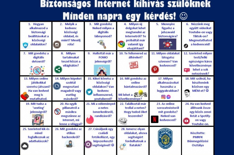 Az online oktatás ráadásul felerősítheti az internet veszélyeit, ugyanis sokkal több időt töltenek el a gyerekek online térben. A téma különösen aktuális, februárban tartják a biztonságos pnternet világnapját, amivel kiemelten foglalkozik az Érdi Rendőrkapitányság. A Police.hu internetes oldalon is megtalálható az a táblázat, melynek segítségével elkerülhető, hogy gyermekünk áldozattá váljon.