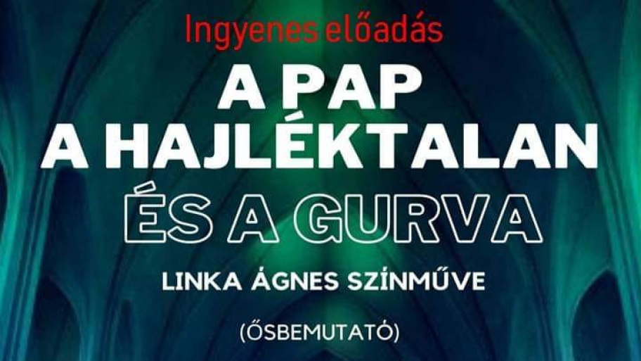 Ingyenes színdarab érkezik a tárnoki Heinrich Antal Házba. A pap, a hajléktalan és a gurva címmel, Gór Nagy Mária rendezésében 2022. január 11-én, kedden 18 órától.