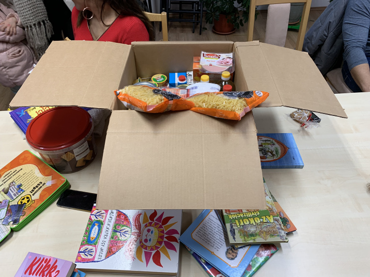 A tartós élelmiszerek mellett a könyveknek is nagyon örültek a kicsik, amiket az egyik nagy könyvesbolt-hálózat ajánlott fel a családsegítőnek. A gyerekek bátran válogattak a különböző korosztályoknak szánt mesekönyvek és regények között, és az otthon maradt testvéreiknek is vihettek belőle.