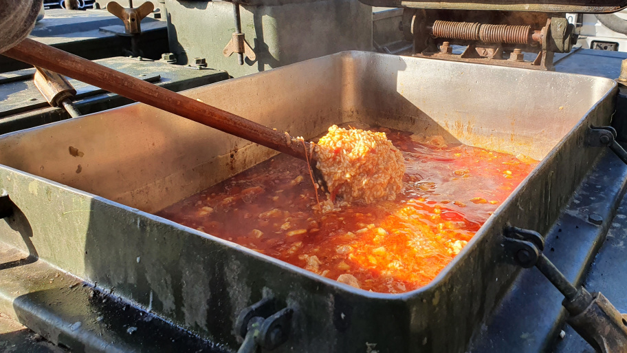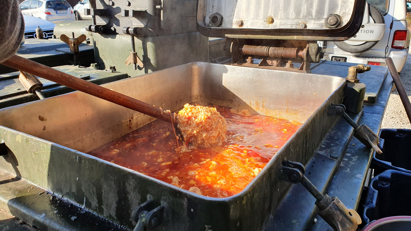 Az ételosztás koordinátora arról is beszélt, a meleg ételből dupla adagot adnak, hogy másnapra is jusson, emellett konzervekkel is támogatják a rászorulókat.