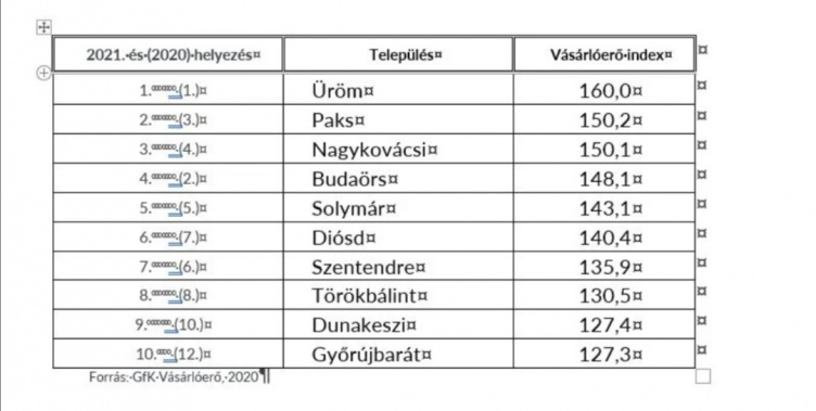 Idén is Üröm a leggazdagabb magyarországi település. A második helyen most Paks, a harmadikon Nagykovácsi szerepel. De a TOP 10-ben benne van Budaörs, Diósd és Törökbálint is.