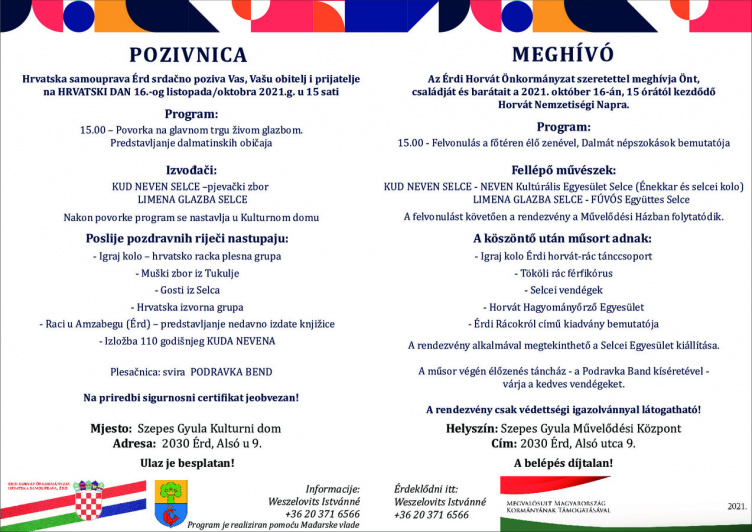 - A nemzetiségi nap kint, a főtéren kezdődik, a fellépők felvonulásával, dalmát népszokások bemutatásával, majd a művelődési házban folytatjuk négy órakor. Horvátországból, Selcéből is érkeznek vendégek, a tököli férfikórus és az érdi tánccsoport mellett ők is fellépnek. Bemutatjuk továbbá dr. Szilágyi József kiadványát, ami az érdi rácokról szól - fűzte hozzá Weszelovits Ági.