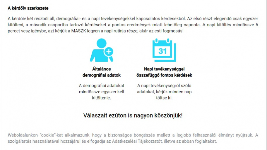 A kérdőív, melyet 2020. márcus 23-a óta több mint 220 000-en töltöttek ki, itt érhető el. Az egyre erősödő második hullámban még fontosabb, hogy minél többen vegyenek részt napi rendszerességgel a kutatásban.