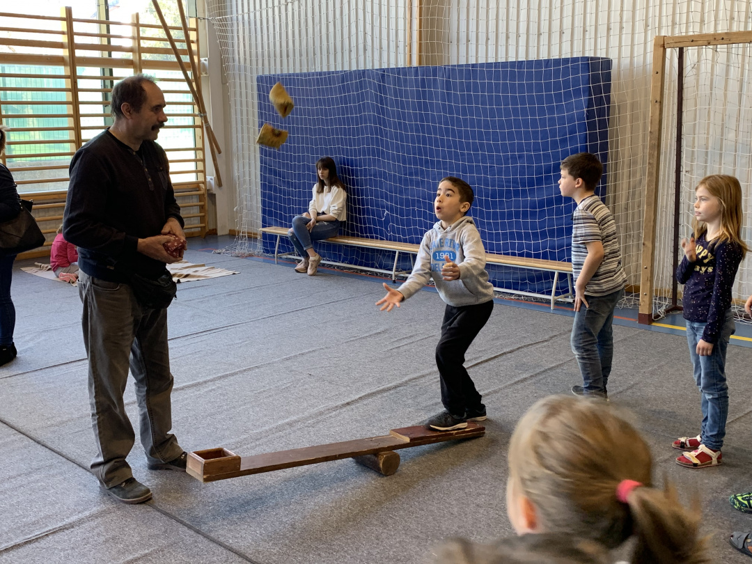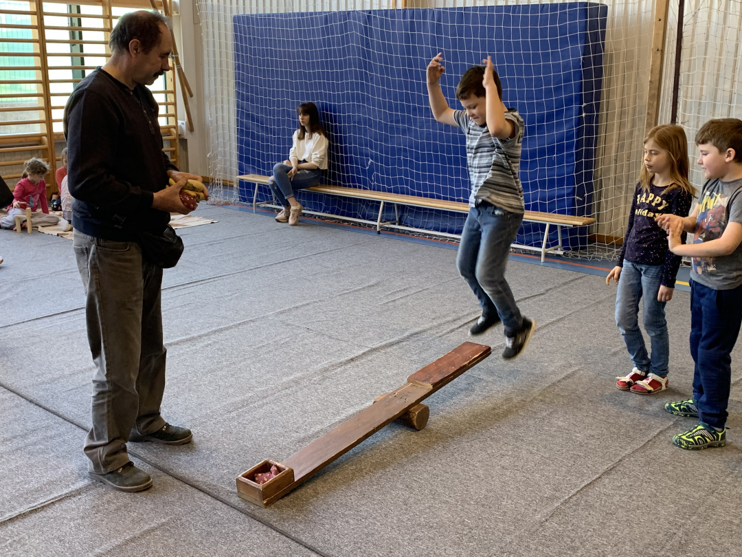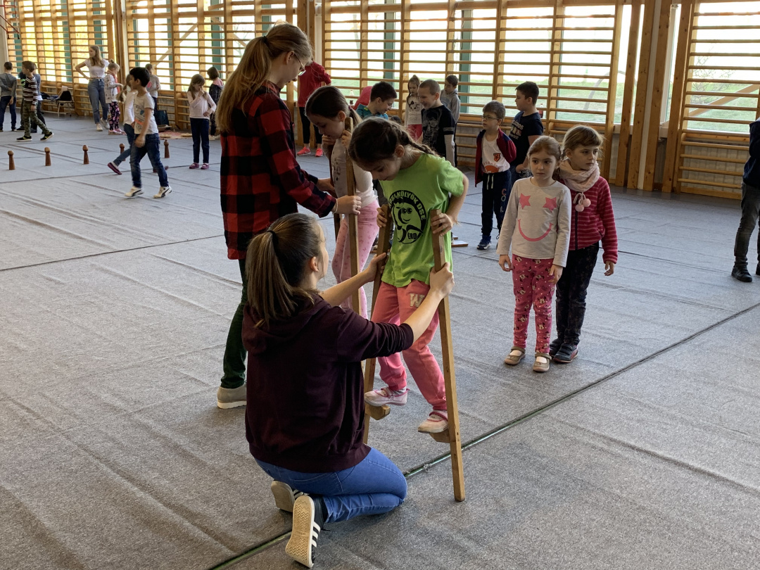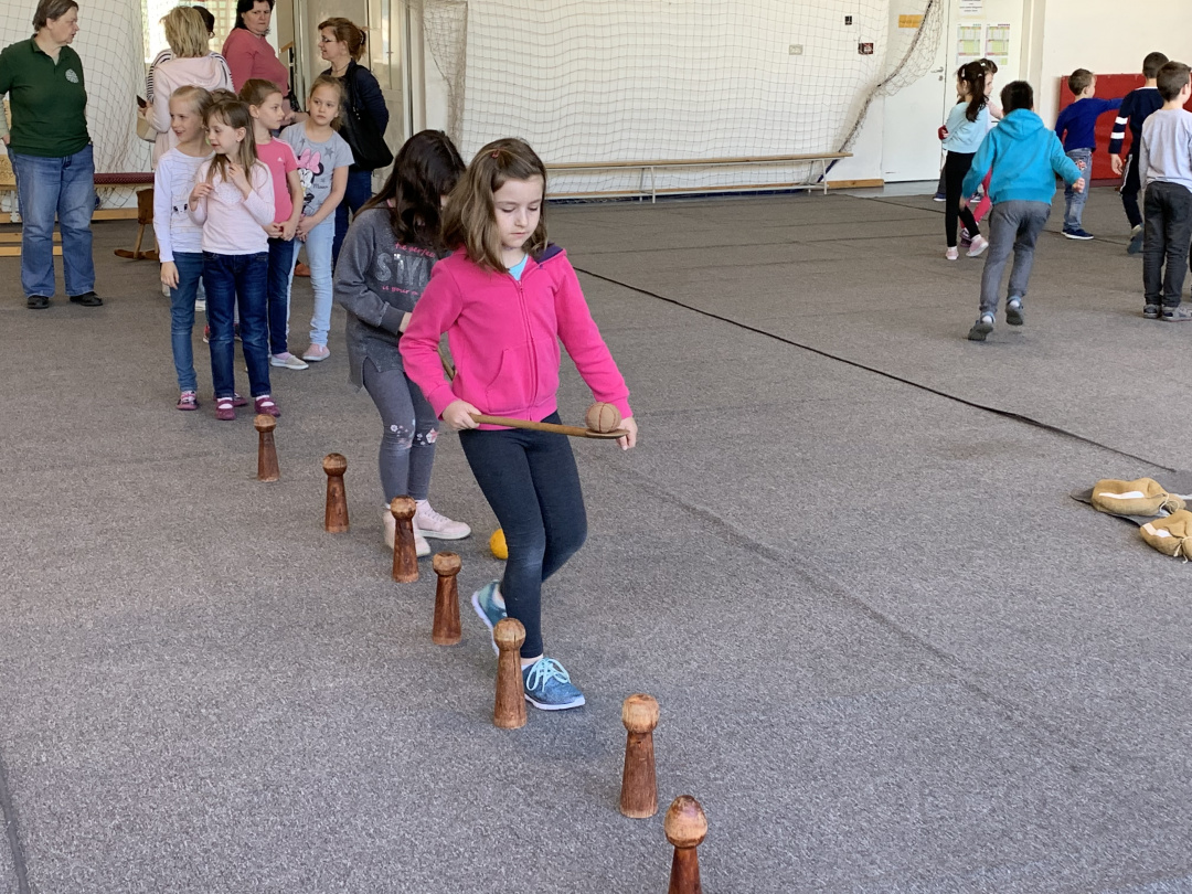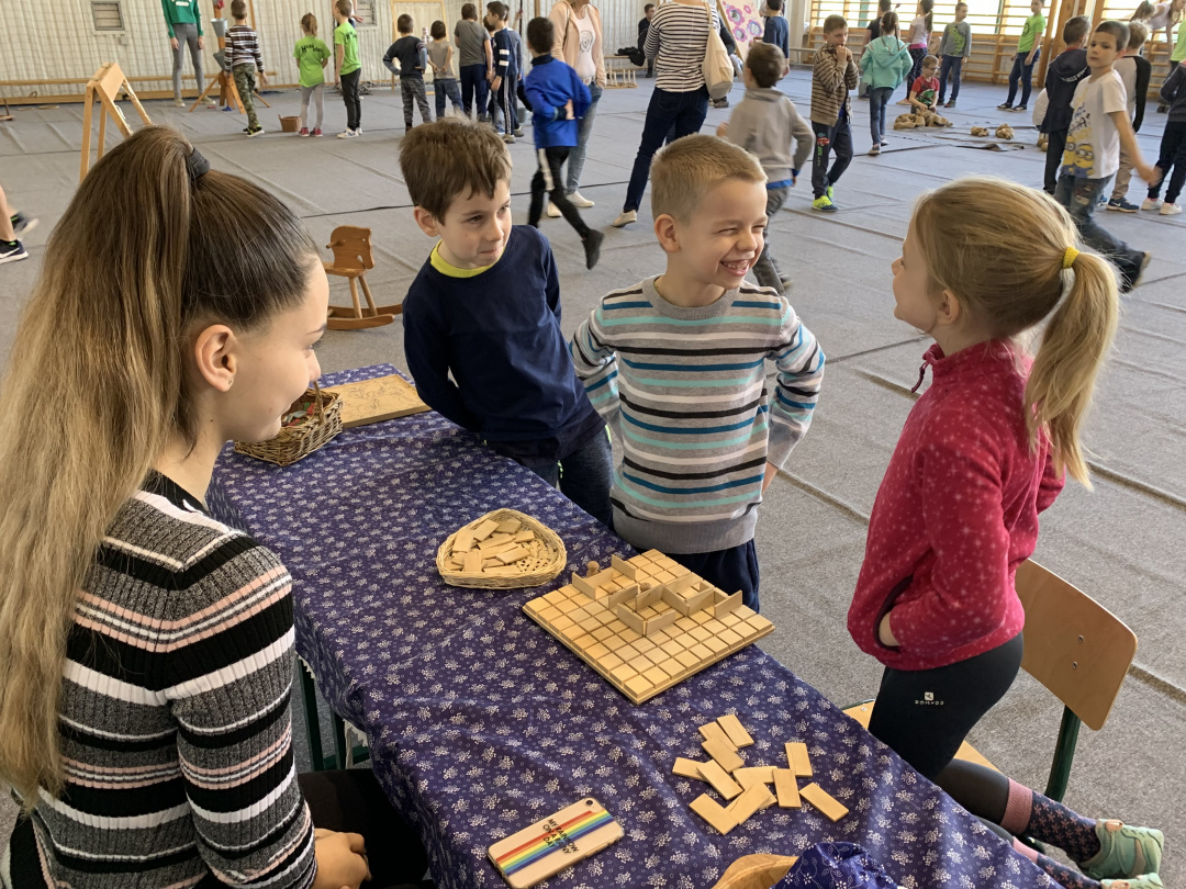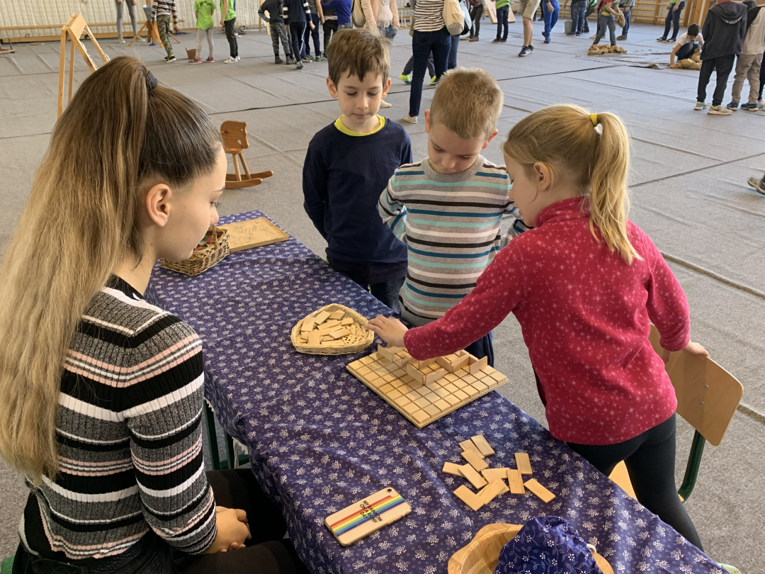 Az alsó tagozatosok az iskola tornacsarnokában hagyományőrző fajátékokkal játszhattak, melyeket az Éltető Értékeinkért Egyesület biztosított a Kőrösi napra.