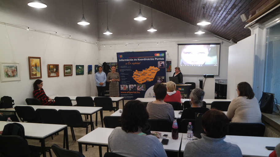 A rendezvényen két fogyatékosságügyi tanácsadó tartott előadást: Bakondi Józsefné az EFI-portált mutatta be, illetve a honlapon keresztül igénybe vehető szolgáltatásokat, a jelnyelvtolmácsolástól az eszközkölcsönzésig. Bahram Laura az információs pontról beszélt. Mint elmondta, tájékoztatást adnak a helyi és az országos közszolgáltatásokról, intézményekről, fejlesztési lehetőségekről, szakemberekről, akadálymentesített eseményekről. Segítenek a speciális szolgáltatásokhoz való hozzáférésben, és klubfoglalkozásokat is szerveznek. 2019 áprilisától felnőtt logopédiai szolgáltatásuk is van. Kapcsolatban állnak érdekvédelmi szervezetekkel, oktatási intézményekkel, család- és gyermekjóléti központokkal. Mint lapunknak elmondta, sokféle problémával fordulnak hozzájuk; úgy tapasztalja, megnövekedett azok száma, akik az SNI-s gyermeküknek keresnek megfelelő oktatási intézményt.