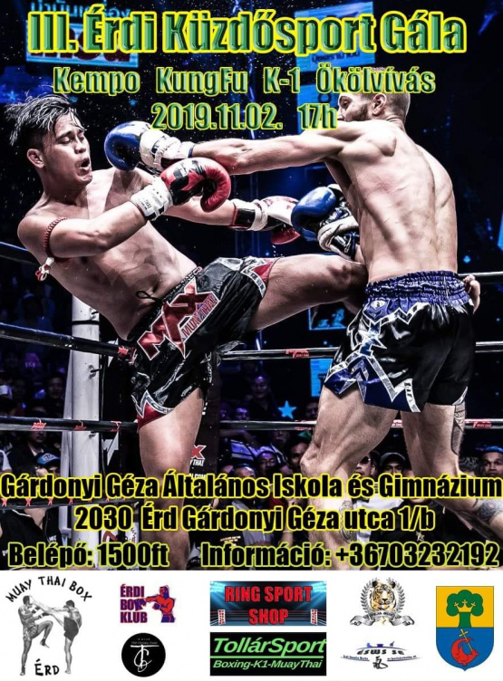 Tizennyolc mérkőzést rendeznek négy küzdősportban a Gárdonyi Géza Általános Iskola és Gimnázium aulájában szombaton 17 órától. A III. Érdi Küzdősport Gálán az Érdi Muay Thai Box SE hat sportolója vív bemutatómérkőzést K-1-es szabályrendszerben, ahol Dudás Dorián Bojtor Csabával, Papp Patrik Abonyi Bencével, Czibere Erik pedig Vekedel Rolanddal csap össze a házi rangadón.