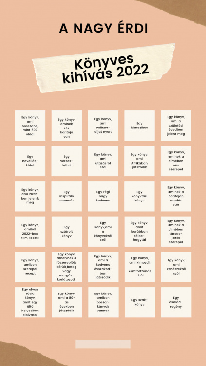 Jövőre is az olvasást népszerűsíti az Érdi Könyvklub, meghirdették a 2022-es nagy érdi könyves kihívást a Facebookon. Harminc kategóriában hirdetnek feladatokat, a könyvmolyoknak pedig nincs más dolguk, mint teljesíteni azokat, ezzel is bizonyítva, hogy olvasni jó.