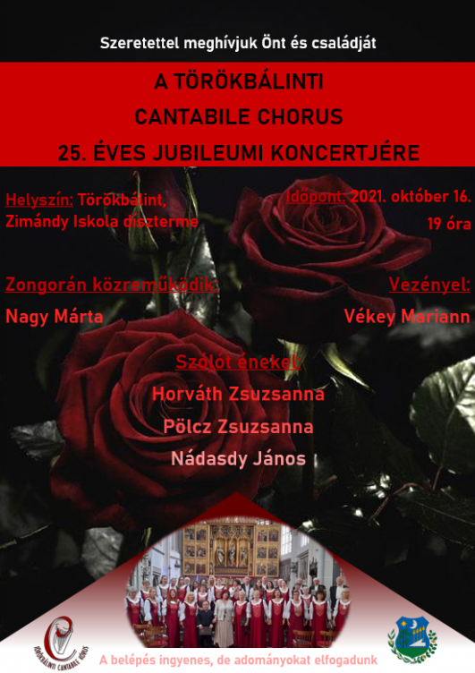 Jubilieumi koncertet ad a Törökbálinti Cantabile Kórus, a Zimándi Iskola dísztermében, október 16-án 19 órától.
