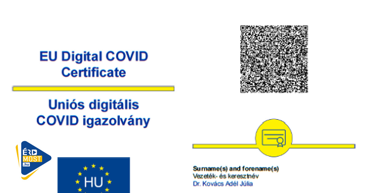 Figyelem! A QR kód ellenőrzése majd csak az ellenőrző alkalmazás (EESZT Covid Control) EU kompatibilis verziójával lesz lehetséges.