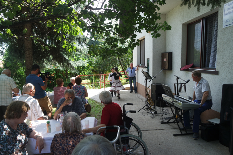 Nemcsak ők szórakoztatták a közönséget: néptáncokat mutatott be két általános iskolás, talpalávalót húzott a Rozbora együttes, és fellépett az Életet az Éveknek Nyugdíjas Klub énekkara is. Ők rendszeresen énekelnek az időseknek a különféle nagyobb rendezvényeken. Most ők is odaültek a terített asztalok mellé, együtt mulattak a Jázmin utcai idősekkel. A Topoly utcai otthonból is érkeztek lakók, így mintegy ötvenen juniálisoztak együtt.