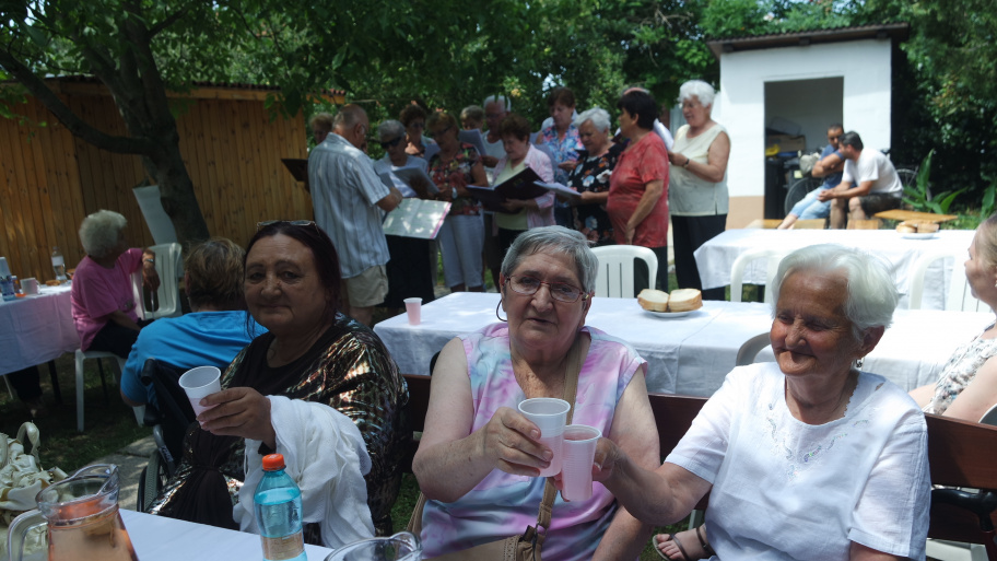 Magdi néni hat éve jár az Idősek Klubjába hetente háromszor, és minden évben eljön a juniálisra. Mint mondta, azért jó klubtagnak lenni, mert társasága van, beszélgethet, sőt, nótázhat is a többiekkel. Erre a rendezvényre régóta készültek, több magyar nótát is előadtak. Fiatal korában szeretett énekelni, és itt, a klubban, idősen újra kedvet kapott rá.