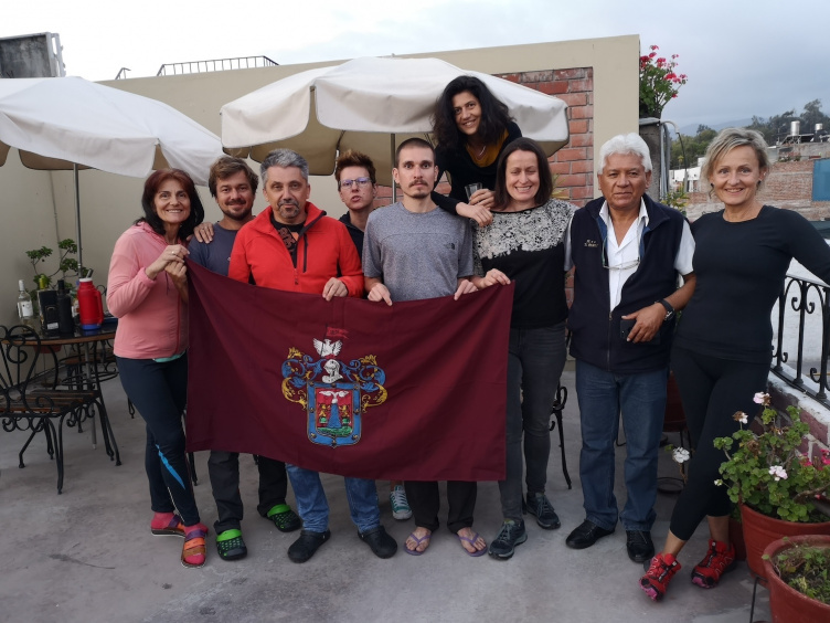 Pénteken este úgy pakoltam össze, hogy nem fogok meglepődni, ha mégsem indul el az a busz. Ősz házigazdánkkal készítettünk egy búcsúfotót a tetőteraszon az arequipai zászlóval. Ha van olyan város, ahová nem mostanában szeretnék visszatérni, az Arequipa. Egyáltalán, ha már az isteni bölcsesség ilyen szépen megoldotta az emberiség legnagyobb problémáját azzal, hogy globálisan minimalizálta az üvegházgázok kibocsátását, talán az óceánt átrepülni sem kellene többé. Fölírtam ezt is a listámra.