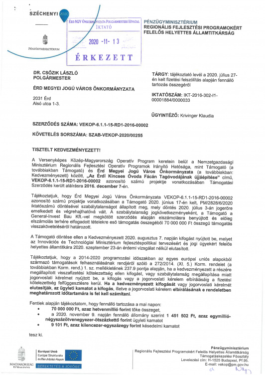 Emiatt most 70 millió forintot kell visszafizetnie Érdnek, ráadásul már most milliós kamatokkal.