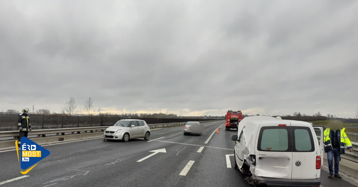 Személygépkocsik ütköztek össze kedden délelőtt az M6-as autópálya 24-es kilométerénél, Érd közelében. Az összetört autók forgalmi akadályt okoztak. Az érdi hivatásos tűzoltók áramtalanították és átvizsgálták a járműveket, majd biztosították a helyszínt.
