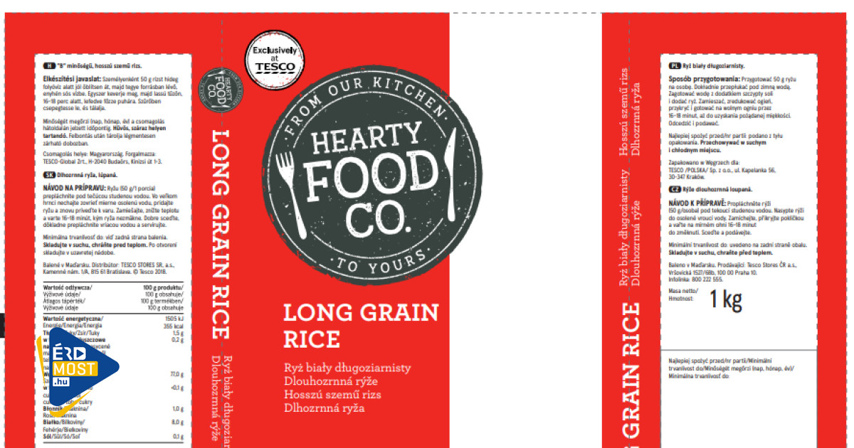 Szabad szemmel is látható, élő állati kártevők jelenléte miatt visszahívta az 1 kilogrammos Hearty food márkájú rizst a Tesco-Global Zrt. - közölte a Nemzeti Élelmiszerlánc-biztonsági Hivatal honlapján.
