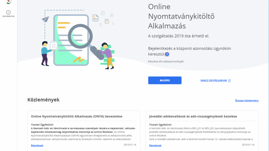 Az ONYA-ban a katások jelentős része, mindössze három adat megadásával (időszak, hónapok száma és elért bevétel) online teljesítheti a tavalyi évről szóló elszámolást, melynek határideje február 25. A webes alkalmazás használatához nincs szükség külön segédprogramra, ugyanakkor a korábbi nyomtatványkitöltő – az ÁNYK – valamennyi funkcióját biztosítja.