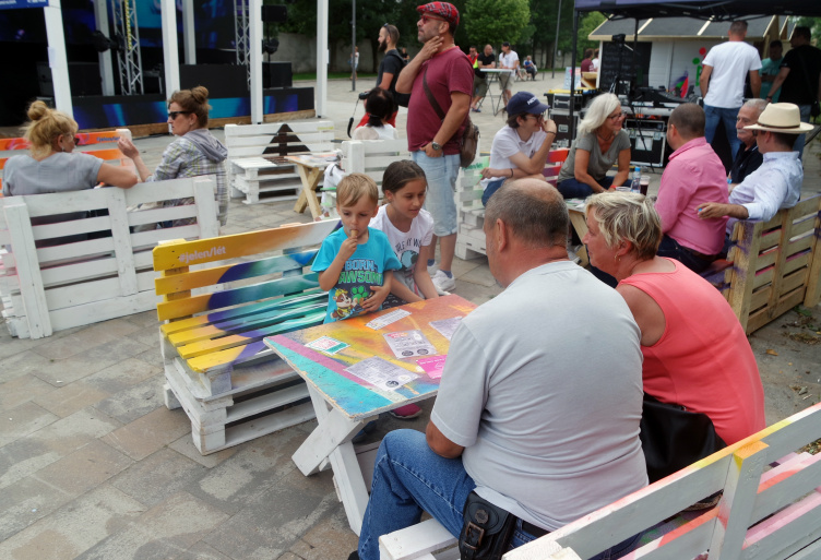 Ha az idő engedi, szeptember végéig élvezhetjük és növelhetjük hétvégenként a főtér nyüzsgését. Érdemes kipróbálni a raklap bútorokat (akár ihletet is meríthetünk belőlük - nem titok, hogy a kivitelezés a Szepes munkatársainak érdeme, akik adományba kapott anyagokból készítették el az ülőgarnitúrákat), ha pedig már nem jut asztal (negyven főre van ugyanis ülőhely), piknikezhetünk a múzeumkert előtti gyepen.