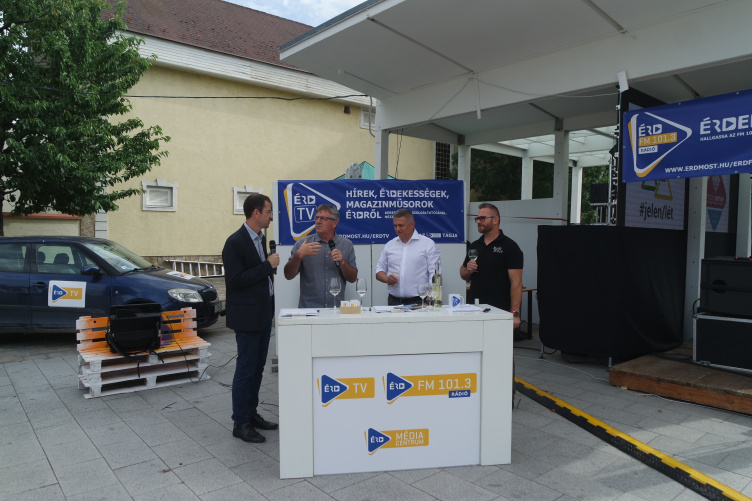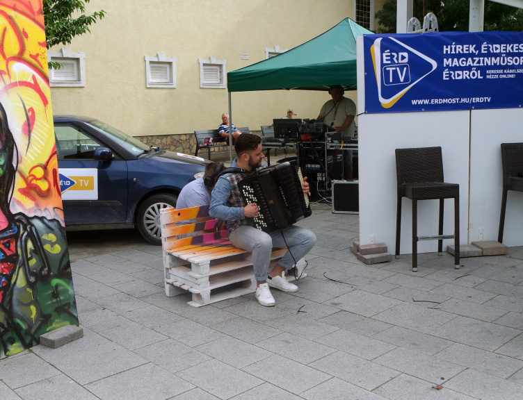 – Érdligetről buszoztunk ide, és azt hittük, többen lesznek, a lakótelep közelsége miatt. Nekünk ez az első ilyen esemény a karantén után. Reméljük, idővel többen lesznek – mondta egy másik hölgy. Való igaz, délután háromkor, amikor az Érdi TV és az ÉrdFM 101,3 első közös, élő adása kezdődött, még csak az első fecskék érkeztek, de négy után már megteltek az asztalok, szemlátomást véget ért a munkaidő. Erre sétált és itt ragadt egy csapat fiatal, érkeztek családok, és harminc felettiek is szép számmal – a Jelen/létnek főleg ez a generáció a célközönsége, lévén kiülős, csöndesebb hely, nem az a klasszikus szórakozóhely.