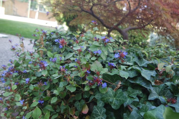 Ez utóbbival most találkoztam életemben először, és bár most nem teljes szépségében áll a fa – hiszen a virágait nyáron hozza –, így is megkapó látványt nyújt a kert közepén, több örökzöld, egy korai meggyfa és a japán juhar társaságában. Igen, ennek a kertnek az is a különlegessége, hogy a növényeket nem a kert sarkába, oldalába csoportosították, hanem középre, mellettük utakat alakítottak ki, ezek vezetnek a hátsó, napfényes traktusba – itt áll nyáron a medence, amit egy házilag kialakított, nagyon szellemes rendszerrel fűtenek. Ősszel és tavasszal a pingpongasztalt állítják fel a térkövezett részen.