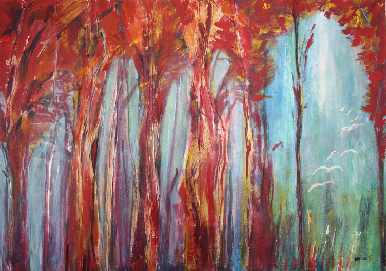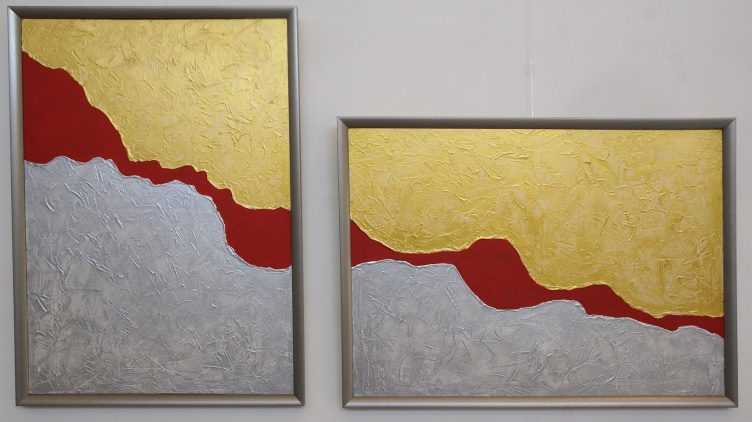 Szedmák Ilona is új utakat keres, izgalmas felületű, nonfiguratív akril képei az érzelmek, a gondolatok vászonra vetítései. Vagy az élet valóságától való menekülése a víziók világába, elvont képzetek, remények, vágyak, félelmek megnyilvánulásai? – gondolkodott el a látványon a méltató.