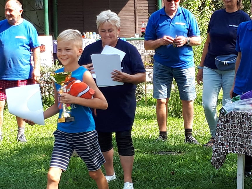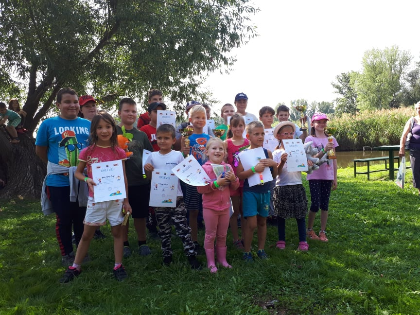 Aztán 11 órakor újra megszólal a duda, jön a jól megérdemelt ebéd minden versenyzőnek és persze az eredményhirdetés is. A legjobbak átvehetik a kupákat és az értékes nyereményeket. Bence két kupát is kap, hiszen ő fogta ki a legnagyobb halat és a második legtöbbet is. Azok pedig, akik most csak tapasztalattal, nem pedig halakkal vagy kupákkal lettek gazdagabbak, azoknak sem kellett lógatniuk az orrukat. Egyrészt az egyik lehető legjobb módon töltötték a vasárnap délelőttjüket a természet lágy ölén. Másrészt a legtöbben új barátokra és hobbira leltek itt. Harmadrészt mindannyian kaptak oklevelet és ajándékokat a szervezőktől. Végül pedig, mert az egyesület tervezi, hogy hagyomány lesz a gyermekversenyből, amit ezután minden gyermeknapon meg fognak rendezni.
