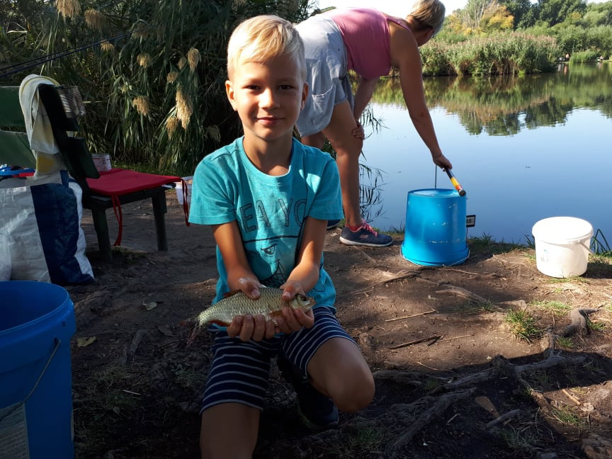 Az indulók között volt, aki most fogott életében először horgászbotot a kezébe, és volt olyan tapasztalt versenyző is a most harmadik osztályos Bence személyében, aki már második versenyén vett részt. Amikor odamegyek hozzá, épp a 22. halát fogja ki és teszi a vödörbe, ami tele van snecikkel (vagy hivatalos nevén: küsszel) és keszeggel. Édesapja, Károly elmesélte, hogy a kisfiút már egyéves kora óta viszi magával a horgászatokra, amiket eleinte a hordozóból figyelt. Négyévesen aztán már ö maga is horgászbotot ragadott, és azóta megállíthatatlan, ha a halakról van szó. Itt, a tárnoki tónál is sorra fogja egymás után a halakat. Mint mondja, szereti őket fárasztani és kifogni őket. A kisebbeket aztán visszadobják, a nagyobbakat pedig hazaviszik magukkal. De ha épp nem akad semmi sem a horgára, akkor is szeret a természetben, a vízparton üldögélni, mert van ez is olyan jó, sőt, még jobb, mint hogy a kütyüket nyomkodja otthon. Édesanyja, Viki is azt meséli, örül, hogy kisfiának ez az egyik hobbija, mert közben a friss levegőn lehet, kikapcsolódhat, pihenhet egyet, és szép élményeket szerezhet a természetben. "Ha épp nem fog semmit sem, akkor is volt, hogy látott teknősöket, vízisiklót. Így tudja igazán megismerni és megszeretni a természetet."