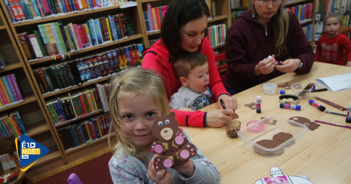 A gyermekkönyvtár évek óta szervez mackós foglalkozásokat az iskolai, óvodai csoportoknak, és idén a családoknak is megrendezték ezt a játékos délutánt. Papírból, dekorgumiból, különböző anyagok felhasználásával készíthettek mackókat a gyerekek, érdeklődésüktől, életkoruktól függően – tudtuk meg Kondriné Varga Kornélia gyermekkönyvtárostól.