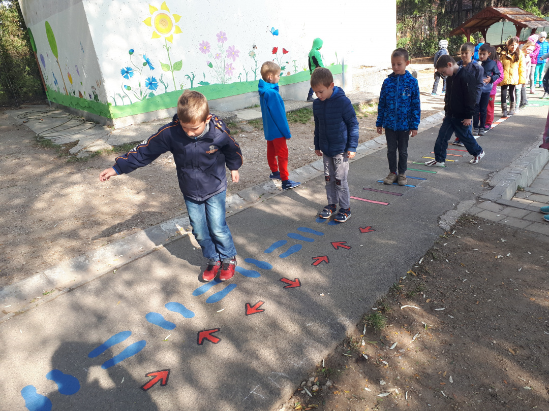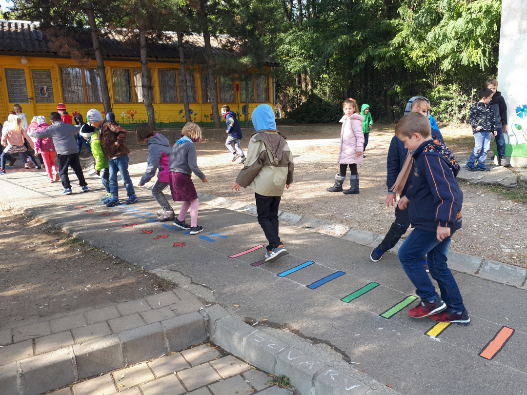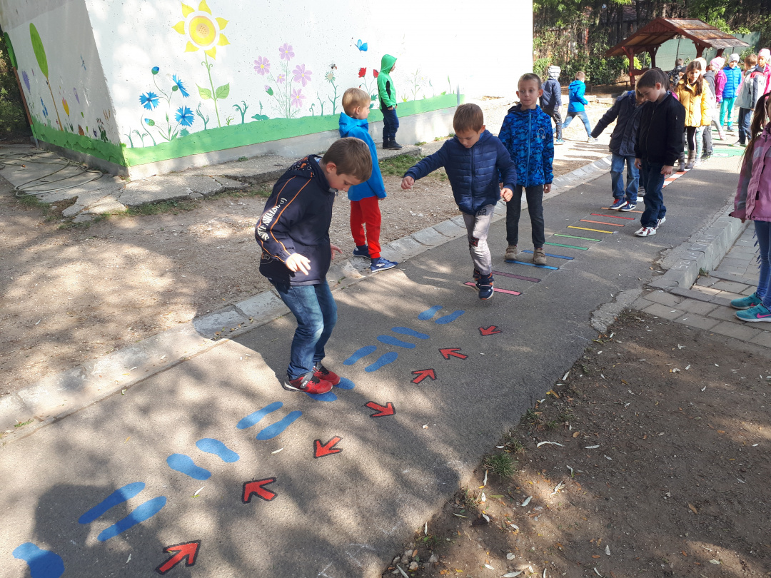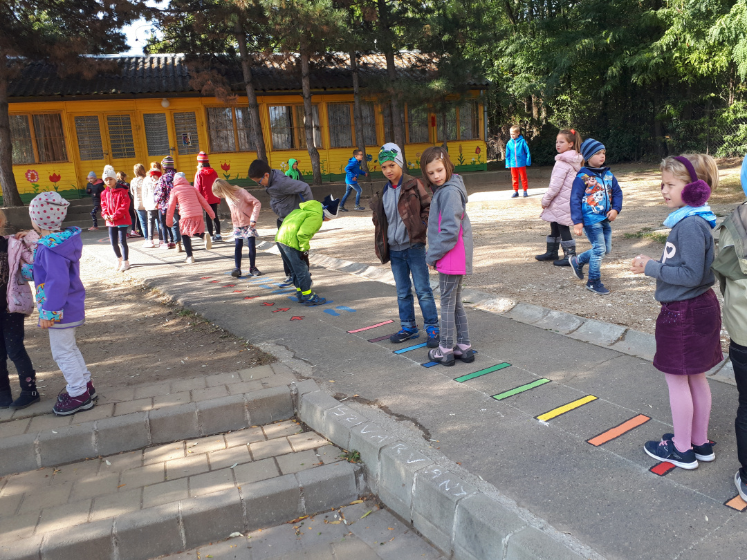 Az iskola vezetősége természetesen egyből a szülők és az ötlet mellé állt, és biztosította a projekthez szükséges anyagiakat. Amikor kedden visszatértem az udvarra, a gyerekek már birtokba vették a játékokat, és elégedett mosollyal az arcukon próbálgattak ugrálni előre-hátra, oldalra, az egyik játék mellé festett nyilaknak megfelelően.