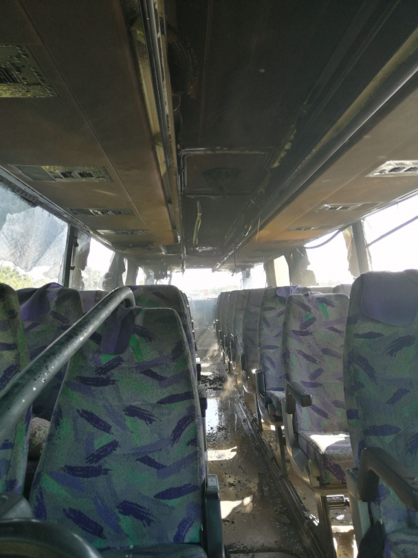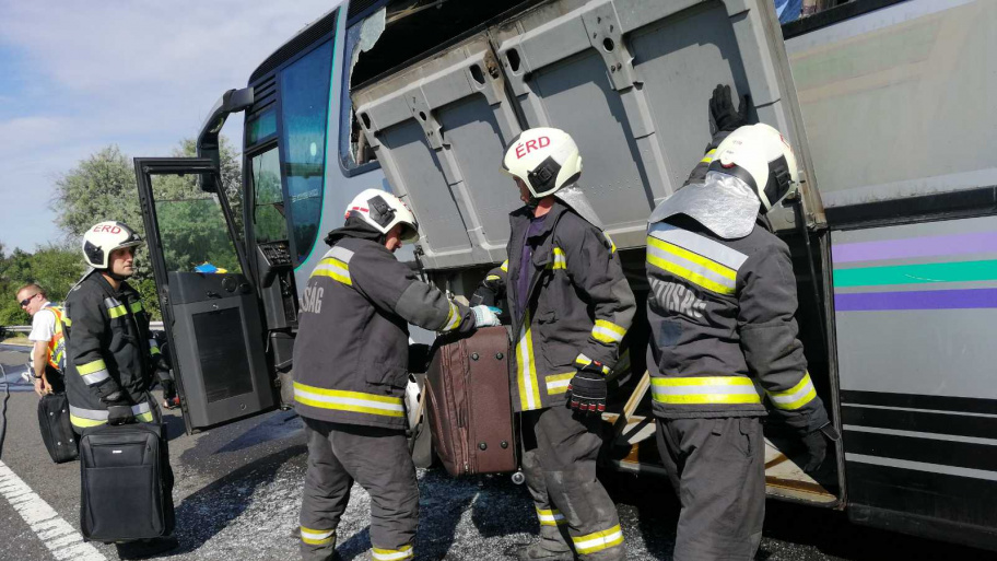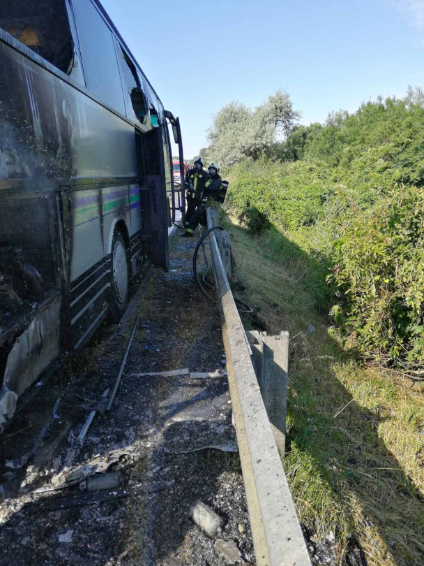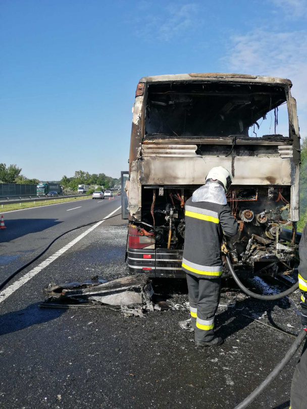 Kigyulladt egy autóbusz csütörtökön reggel az M7-es autópálya 23-as kilométerénél, Tárnok közelében. A buszon harmincöten utaztak, mindannyian időben sérülések nélkül elhagyták az égő járművet.