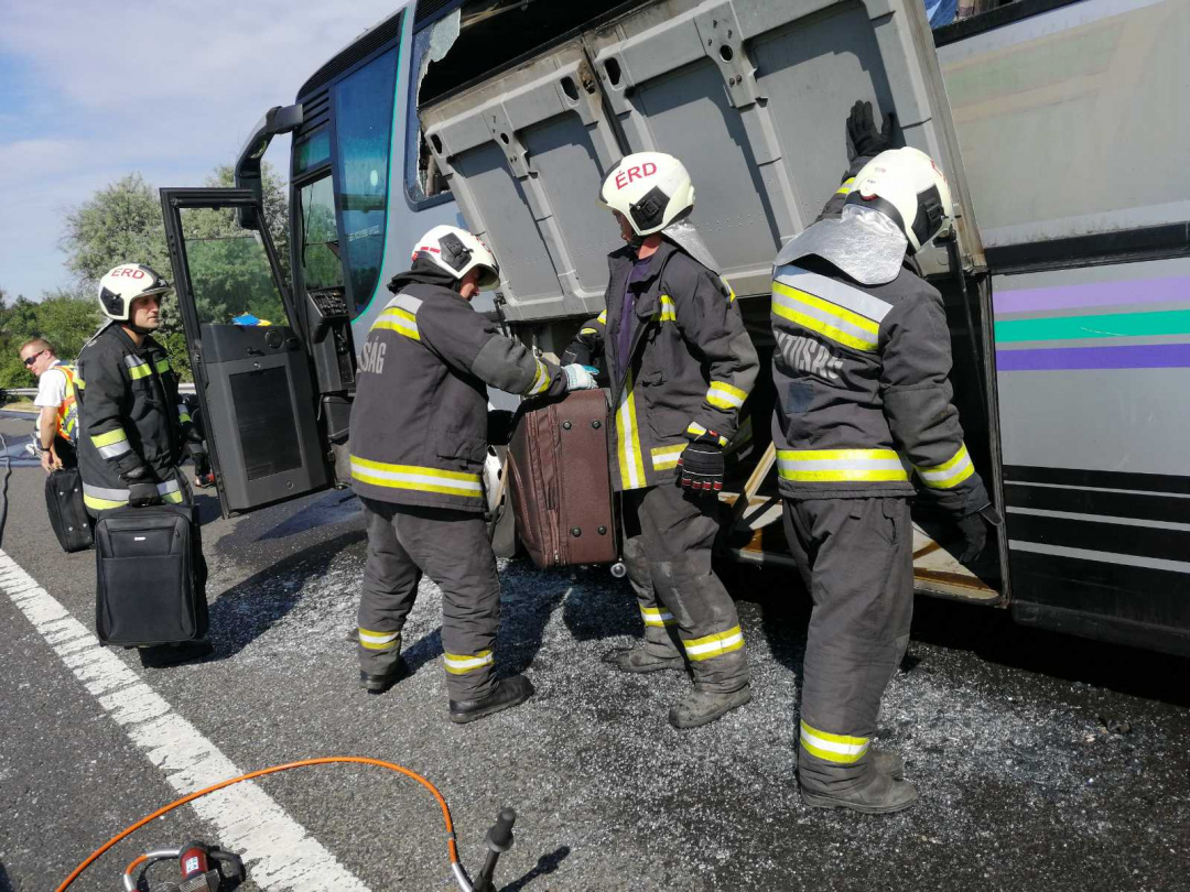 Kigyulladt egy busz az M7-esen, Tárnoknál