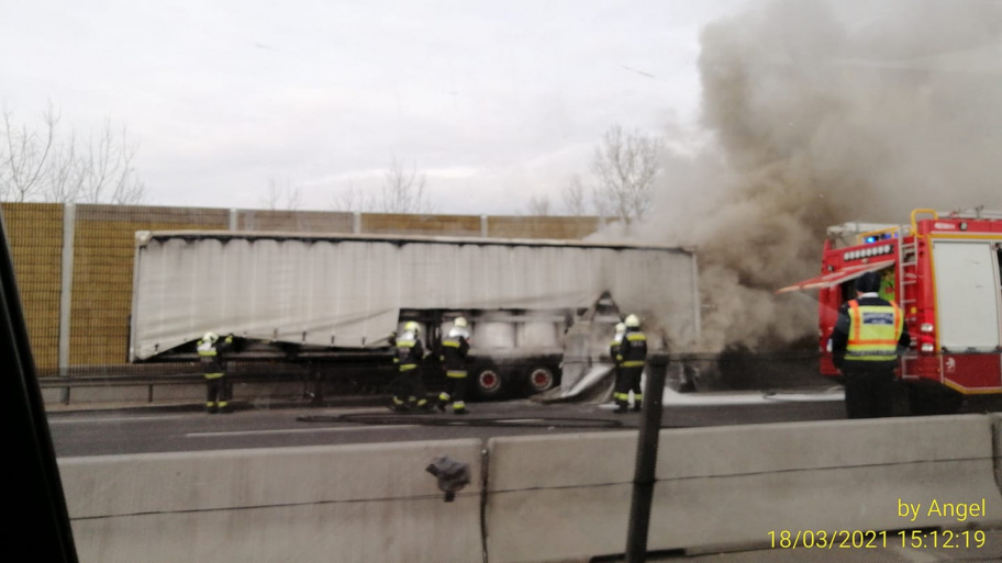A baleset-info.hu információi szerint lángra kapott egy kamion pótkocsija az M0-s autópálya 19-es kilométerénél, Szigetszentmiklósnál, az M1-es autópálya felé vezető szakaszon.