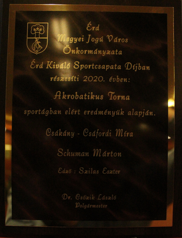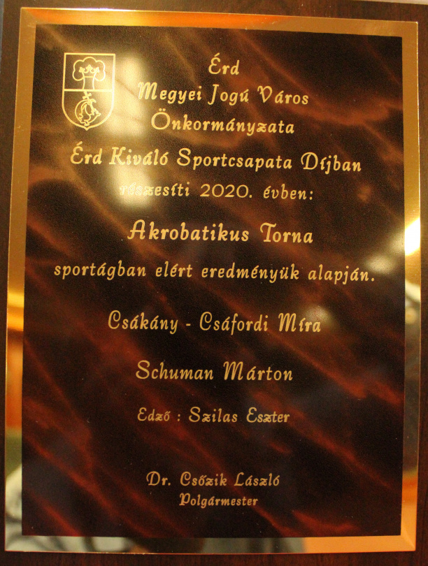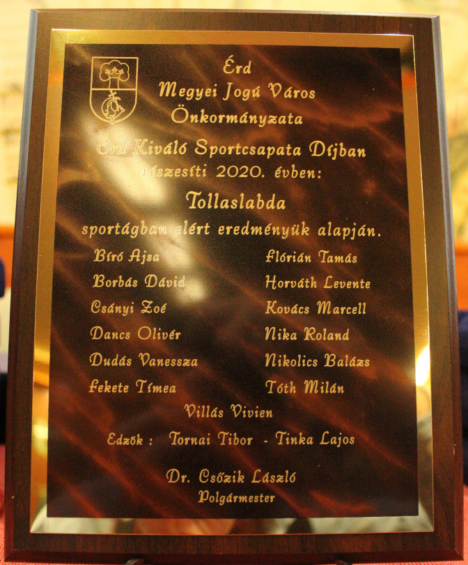 Ezt követően a polgármester mellett Szűcs Gábor alpolgármester, Lengyel Péter, a Sportbizottság elnöke, Csépán István, a Sportbizottság alelnöke és Hüse Nikolett, az Érdi Ifjúsági Önkormányzat diákpolgármestere adta át az elismeréseket a díjazottaknak.