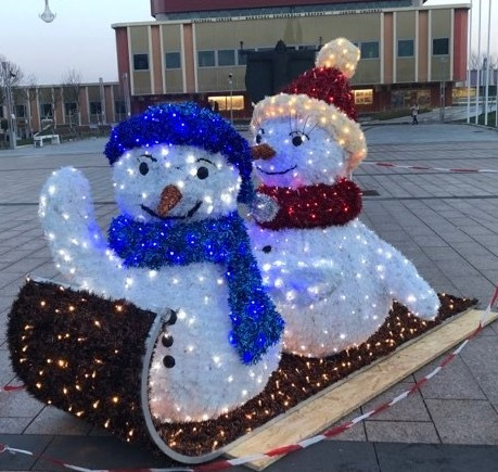 Két hóember költözött Százhalombatta főterére. Nevüket a lakosok szavazatai alapján kapták.
