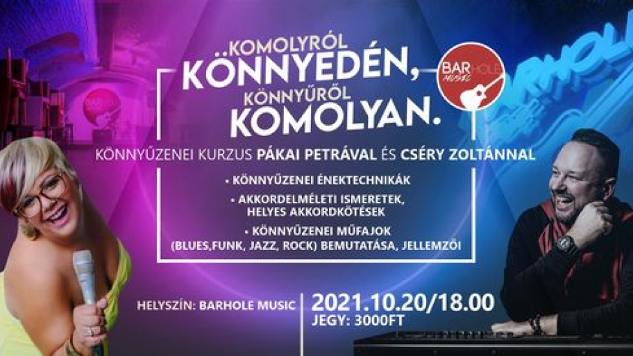 Ha elindulnál a könnyűzenei vonalon, érdekel a zeneelmélet, dalírási ismeretek, különböző könnyűzenei műfajok jellemzői, látogass el a BARhole-ba október 20.-án.