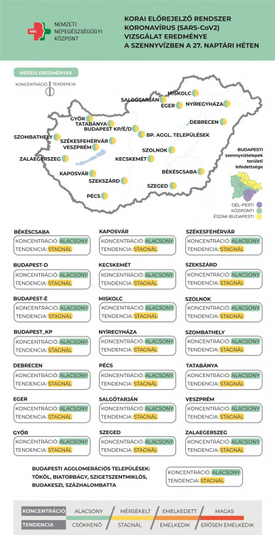 A 27. héten továbbra is alacsony szinten stagnál a szennyvízminták SARS-CoV-2 koncentrációja.