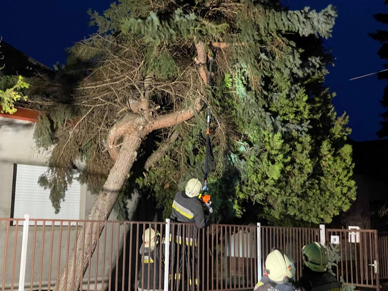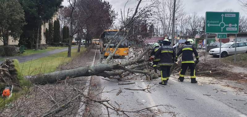 - Az M7-es autópálya 22-es kilométerénél, Tárnok közelében egy fa dőlt az úttestre. Nemsokkal később Tárnokon a Vörösmarty utcában kellett a bajt elhárítani, itt ugyanis egy 15 méteres fenyőfa zuhant a háztetőre, amiben a kémény is megsérült, így az ott élőknek ki is kellett költözniük, hiszen a fűtést így nem tudták tovább használni. Diósdon a Szabadság utcában és Törökbálinton az Óvoda utcában szakította le a vezetéket a kicsavart fa, míg Érden a Bajcsy-Zsilinszky úton egy kifeszített ponyva alá kapott a szél. Érden még a Csorbóka utcában, a Botond utcában, és a Garam utcában voltak kidőlt fák, de riasztották kollégáimat még Diósdon a Gárdonyi utcából és Százhalombattán a Damjanich utcából, ahol egy fa állta el a közlekedők útját - sorolta a szóvivő.