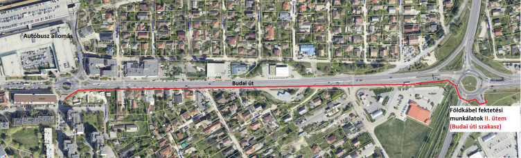 Elsőként a Béke téri lakótelep és az üzletsorok közötti út és járda egy részét bontották fel. A sajtófőnök tájékoztatása szerint a következő ütem október 4-én indul, amikor a Budai úton, a bevásárlóközpontnál lévő körforgalomtól egészen a hipermarketig fektetik le a földkábelt.