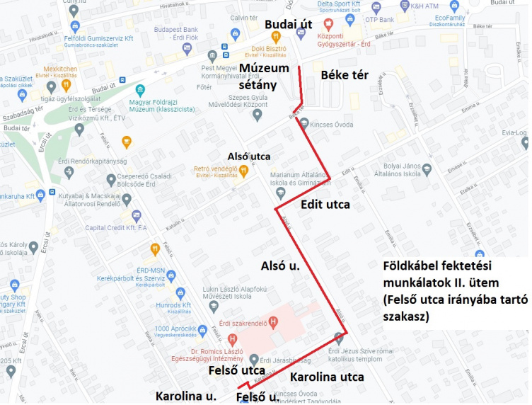 Elmondta azt is, október 4-től már egy másik szakaszon, az Edit utca–Alsó utca–Karolina utca–Felső utca szakaszon is dolgoznak, hogy minél hamarabb befejezzék a munkálatokat, melyek az előzetes tervek szerint október 29-ig tartanak.