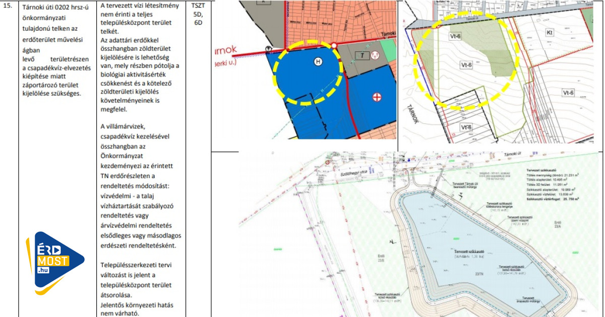 A fórumon két terület kapott nagyobb érdeklődést, azaz több kérdést. A papi földeken már működő záportározó, amivel kapcsolatban az önkormányzat felvetette, hogy a kertvárosi lakóövezet helyett intézményi vagy vegyes területté is át lehetne sorolni. Szűcs Gábor úgy nyilatkozott, hogy szeretnék, ha az érdiek közösen döntenének arról, hogy maradjon-e a terület lakóövezet, azaz épüljenek tovább ott családi házak vagy intézményi területté, esetleg vegyes területté átsorolva óvoda, bölcsőde is létesülhessen ott.