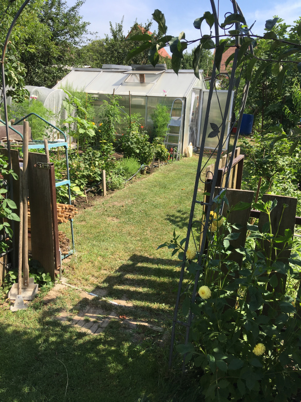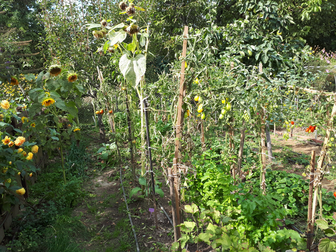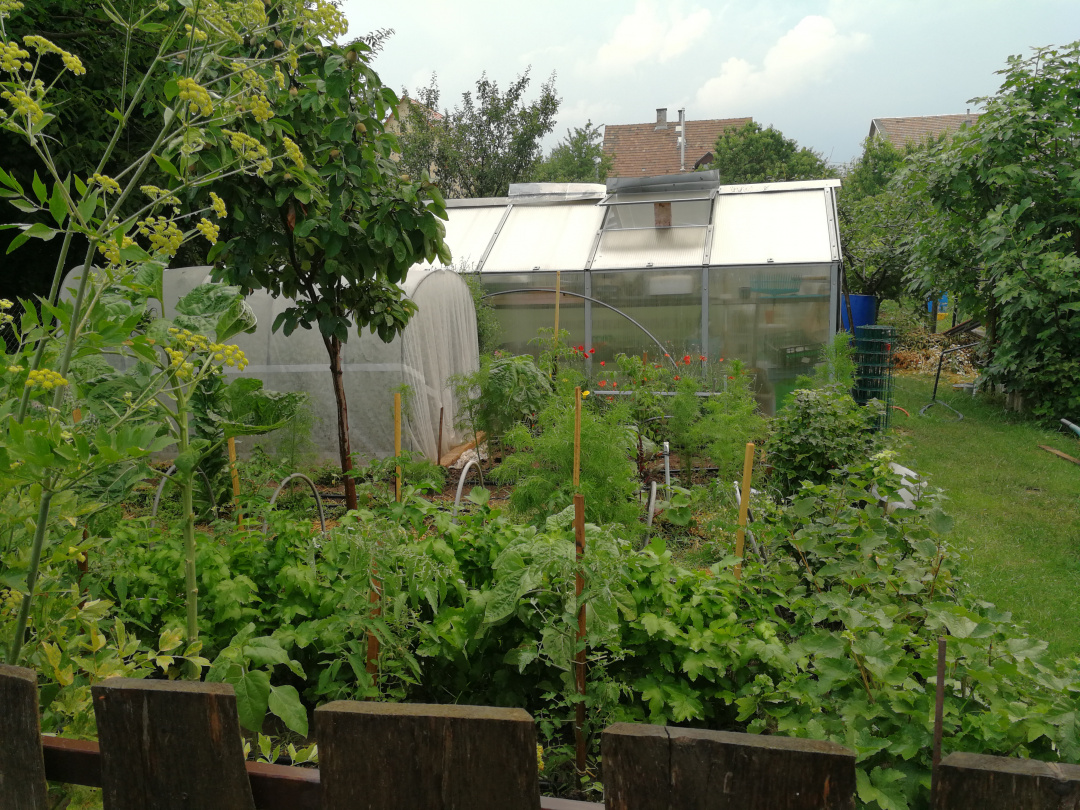 A kert egyik részében vetésforgó, a másikban pedig soros művelés szerint termesztenek többek között paradicsomot, padlizsánt, paszternákot, uborkát, répát, céklát, krumplit, csicsókát, paprikát, málnát, epret, szedret, ribizlit, fügét, cseresznyét, birsalmát. Miközben végigjárjuk a kertet, Éva folyamatosan kommentálja, mivel mit kell még majd csinálni. Akad itt teendő bőven, de ezt - szemmel láthatólag - Éva egyáltalán nem bánja.
