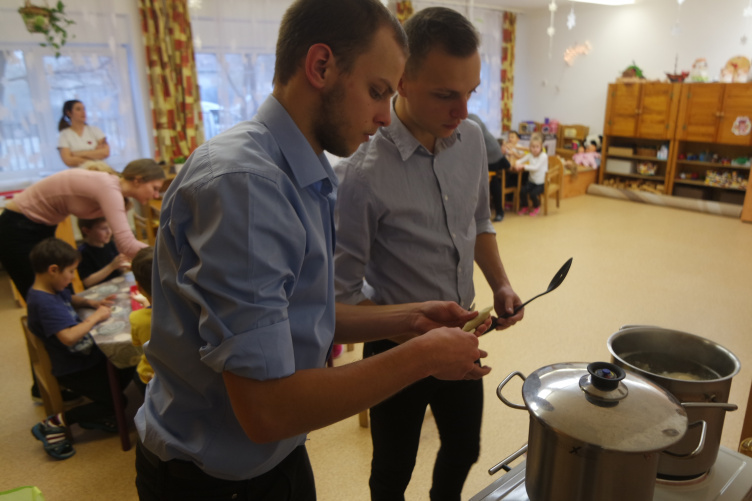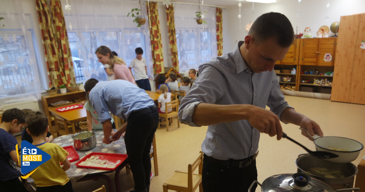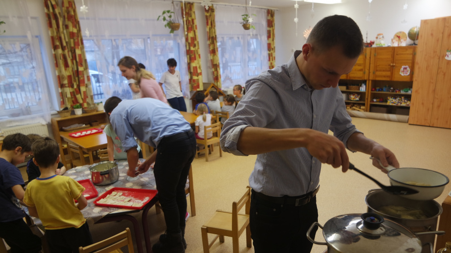 – A pirog nagyon népszerű lengyel karácsonyi étel. A megtöltött tésztát kifőzzük, és szokás pirított hagymával egy kicsit megsütni is – mondta Szczerba Roland, aki képviselőtársával, Szczerba Loránddal és egy lengyel önkéntessel jött el a gyerekekhez, akikkel együtt szaggatták, töltötték és főzték ki a tésztát.