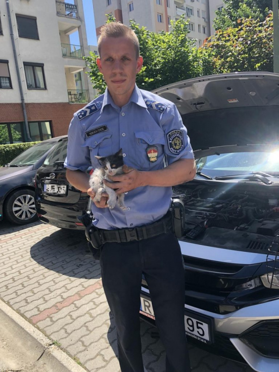 Hangos nyávogásra lett figyelmes egy járókelő, amikor a napokban egy budaörsi parkolónál járt. Megnézte, honnan jön a hang, majd egy leállított autó mellett megállt. A járókelő a nyávogó kocsi mellett állva rögtön tudta, mit kell csinálni, és hívta a rendőröket. Amikor a biatorbágyi körzeti megbízott kiért a helyszínre, ő is telefonálni kezdett a macska megmentése érdekében. A kocsi tulajdonosa a parkolóban kinyitotta a kocsiját, majd Horváth Ferenc főtörzsőrmester, biatorbágyi körzeti megbízott megkezdte a cicamentést.