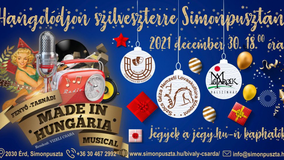 Előszilveszter alkalmából a Magyarock Dalszínház és a Magyar Történelmi Színház Simonpusztán mutatja be a Made in Hungária című darabot, amelyet Fenyő Miklós és a Hungária ihletett. A Szőcs Géza Nemzeti Lovaskultúra Központban december 30-án rendezendő előadásra jelképes árú belépőt lehet venni.