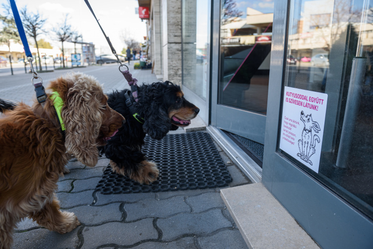 Gondoltunk egyet, és kipróbáltuk, mennyire keltünk riadalmat az érdi üzletben, ha két rakoncátlan spániellel érkezünk az előadótérbe. Már a bejárati ajtónál feltűnő, nagyméretű matrica jelezte, hogy a négylábúak is szívesen látott vendégek. Örömmel jelentem, hogy az eladóknak szeme sem rebbent a két izgága kutya láttán, és az ügyfeleknek sem volt ellenvetése.
