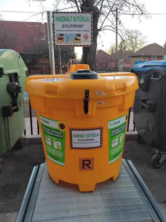 A gyűjtőedényben használt sütőolaj, sütőzsiradék, kókusz- és pálmaolaj is elhelyezhető.