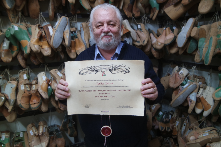„Ez a szakma kihalófélben van. Közel harminc éve nincs utánpótlásunk, megszűnt az iskola, gyorstalpaló tanfolyamot indít egy-két cég, ahol lehet némi ismeretet szerezni az ortopédcipő-készítésről, de ez édeskevés. Pedig egyre több az ortopédiai probléma, és ezek egyre fiatalabb korban jelentkeznek: kétéves gyermekeknek is készítünk cipőket. Sokan odafigyelnek a megelőzésre is, és talpbetétet csináltatnak” – mondta Balázs úr, aki nagyon büszke a VOSZ kitüntetésére, és megtisztelőnek érzi, hogy felterjesztette őket a díjra az Érd és Környéke Ipartestület. Mint megtudtuk, nehéz időszakon vannak túl, másfél hónapig zárva voltak tavaly, hiszen a rendelőkben csak sürgősségi ellátás volt, nem írtak fel ortopéd cipőket. „Valamennyire ment a munka, akinek házhoz tudtuk küldeni a termékeket, megoldottuk. Nem kellett egyetlen munkatársunkat sem elküldenünk” – fűzte hozzá a vállalkozó, aki ugyan már nyugdíjas – a fia vette át a céget –, de még mindig dolgozik, mert szeretné, ha minél több embernek tudnának segíteni.
