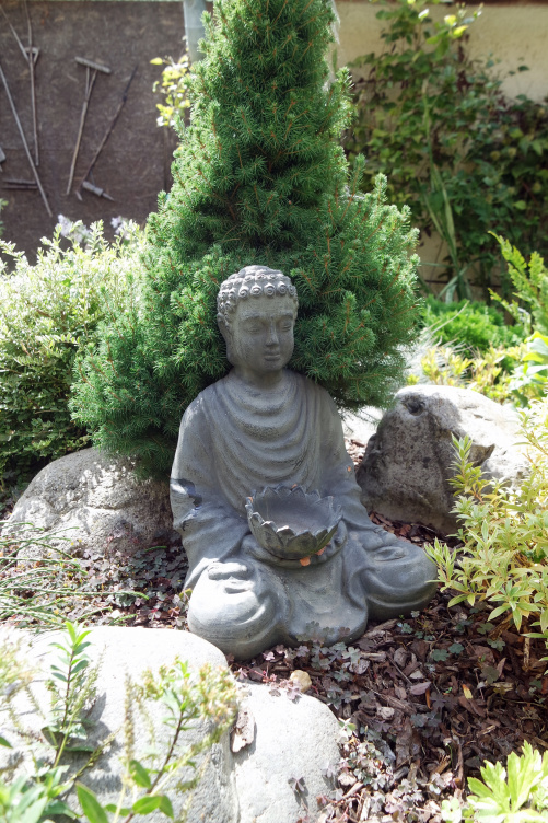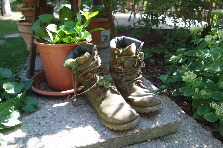 Eben a tündérkertben Bakancsban nő a kövirózsa, kőhattyú mosolyog a tavirózsára, sehol egy szál gyom, még sincs művi hangulata az egésznek. Ahogy Marcsi fogalmazott bemutatkozó levelében: „Mindig is vonzott a szépen burjánzó növénydzsungel, ami mindig megmutatja a legszebbik arcát.” Ez így is van: bár a hűvös őszelőben jártam a kertjében, nem győztem csodálkozni. „Tavasszal, mikor a virágzás kezdődik, valami csoda! Nyáron vagy ősszel azt felülmúlni nem lehet. Több mint négy évtizede élek Érden, a férjemmel negyven évig voltunk házasok, pár éve távozott el közülünk. Folyamatosan építettük a kertünket. Most, hogy elment, ráébredtem, hogy egymagam kevés vagyok ahhoz, hogy kordában tudjam tartani az összes növényt. Sok mindent kiszedegettem, hogy minél kevesebbet kelljen kapálnom” – meséli Marcsi.
