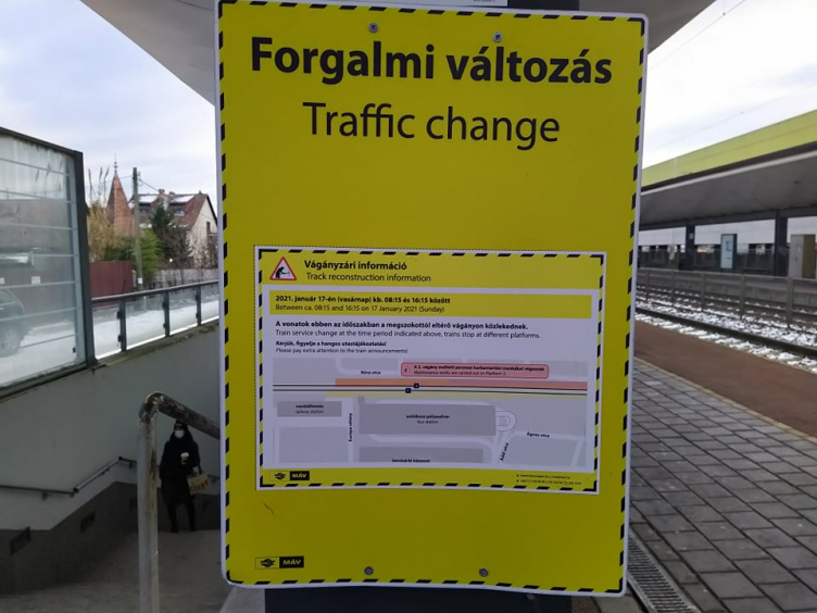 Karbantartási munkálatokat végeznek a második vágány melletti peronon Érd alsón január 17-én, ezért 8.15 és 16.15 között a megszokottól eltérően közlekednek a vonatok. A vasúttársaság azt kéri, az utasok figyeljék a hangos utastájékoztatást!
