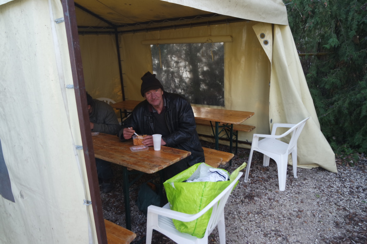 Az első vasárnapon bolognai spagetti, házi sütemények, meleg tea várta az érkezőket. Az ebédről az Érdi Adventista Gyülekezet gondoskodott; az ételt dobozolva, csomagolva vehették át a rászorulók, akik eldönthették, hogy helyben fogyasztják el, vagy elviszik magukkal az ételt.