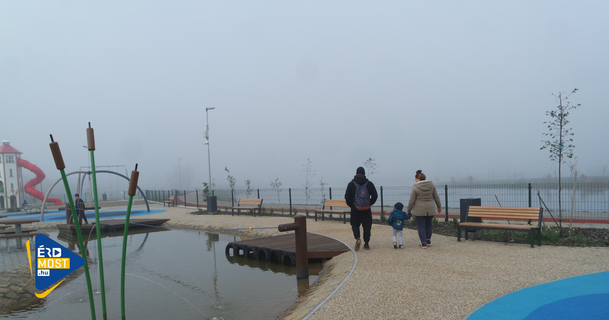 Az akadálymentesített parkban, a játszótér szomszédságában még egy melegedőt is létesítettek, mosdókkal, öltözőkkel (ez utóbbit térítés ellenében vehetik majd igénybe a sportolni vágyók), és még étel- és italautomatákat is elhelyeztek az asztalok mellett. Így ebben a hűvös őszi időben van hol átmelegedni, pihenni a sok szaladgálás, sportolás után.